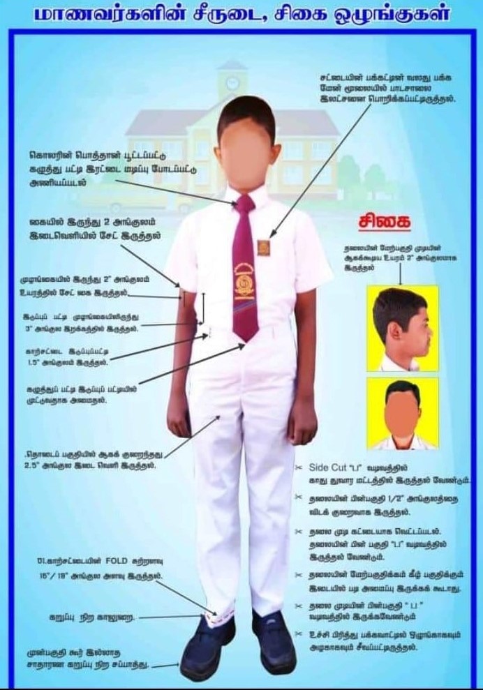 - The color of the shoes should be black and different styles of shoes should not be worn.